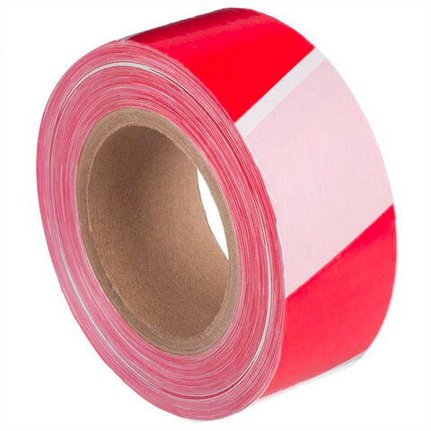Лента оградительная сигнальная красно-белая, 50 мм х 200 м, СТАНДАРТ, основа полиэтилен