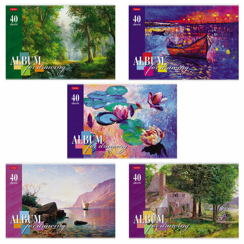 Альбом для рисования, А4, 40 л., скоба, обложка картон, тиснение, HATBER, 205х290 мм, Страна грез, ассорти