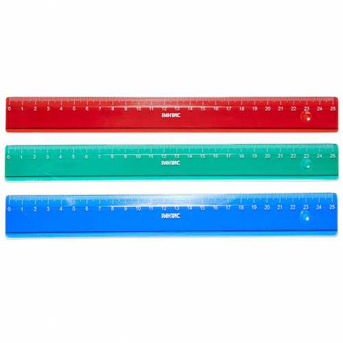 Линейка пластиковая 25 см, прозрачная, ассорти