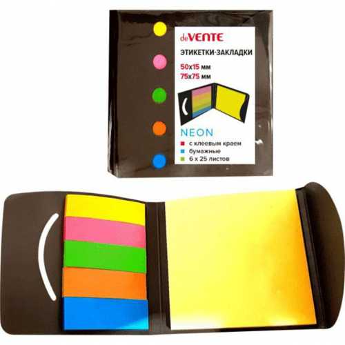 Закладки с липким краем (50*15мм; 75*75мм) 5 цветов, по 25л. НЕОН