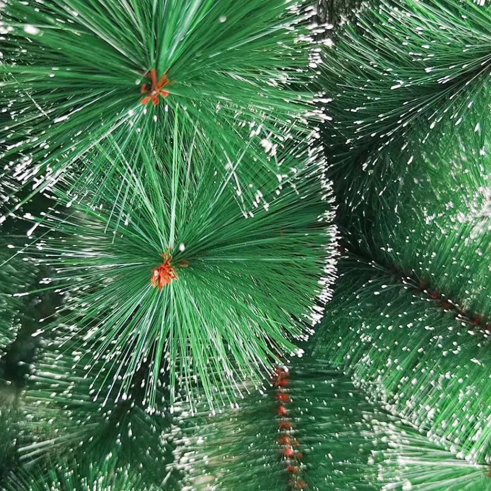 Пышная новогодняя сосна с длинными иголками и белым напылением станет настоящим украшением праздничного интерьера.