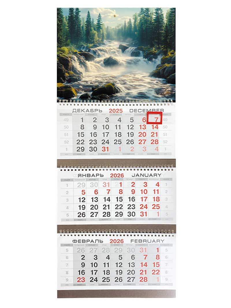 Календарь квартальный на 2026 год, 3 блока 3 гребня с курсором, металл+объем 295*720мм. Речные пороги