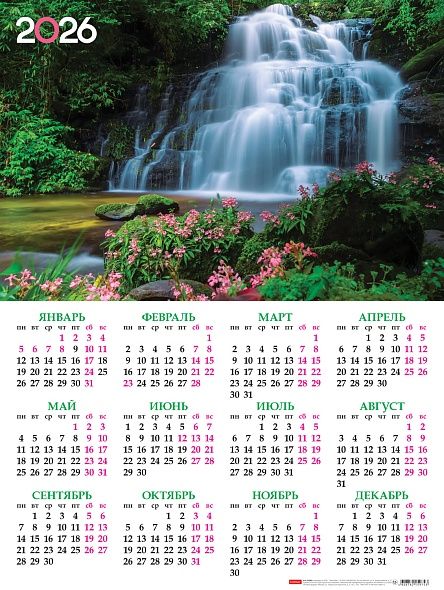 Календарь настенный листовой 450*598мм на 2026г. Живописный водопад