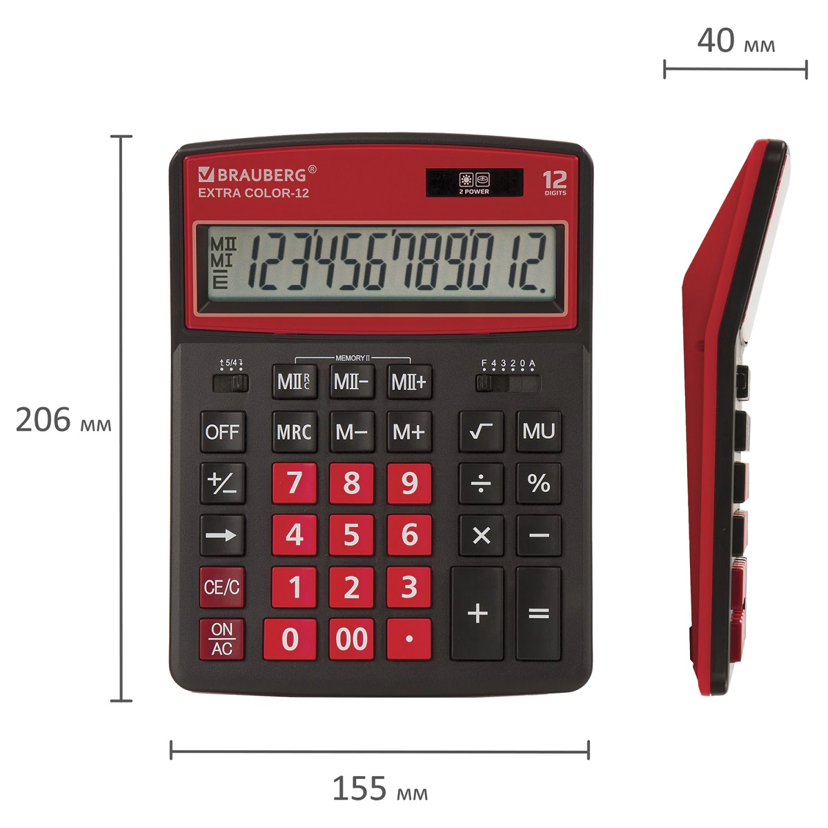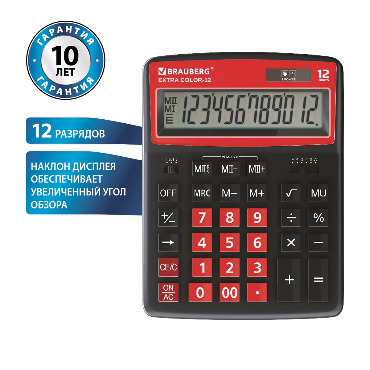 Варианты доставки товара Калькулятор настольный BRAUBERG EXTRA COLOR-12-BKWR (206x155 мм), 12 разрядов, двойное питание, черно-красный г. Выборг: