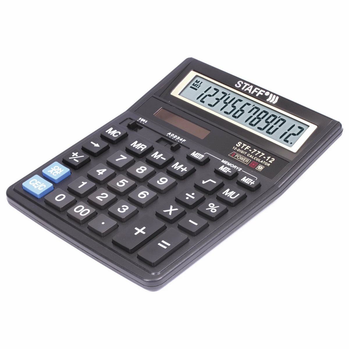 Калькулятор настольный STAFF STF-777, 12 разрядов, двойное питание, 210x165 мм, ЧЕРНЫЙ