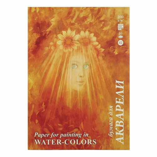 Бумага для акварели БОЛЬШАЯ А3, 10 л., 200 г/м2, бумага ГОЗНАК, среднее зерно, Флора