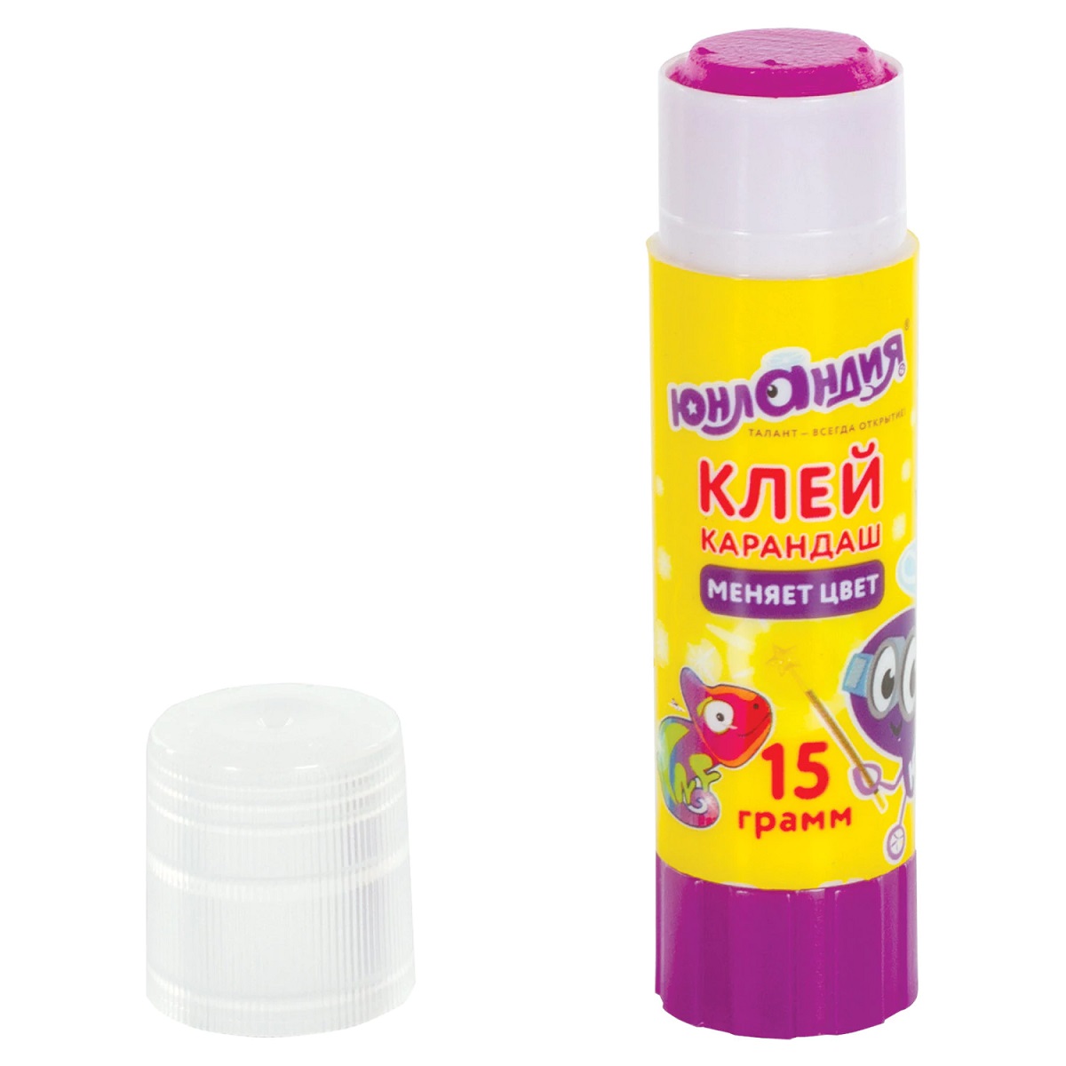 Клей-карандаш цветной ЮНЛАНДИЯ "ЮНЛАНДИК И ХАМЕЛЕОН", 15 г, обесцвечивающийся после высыхания
