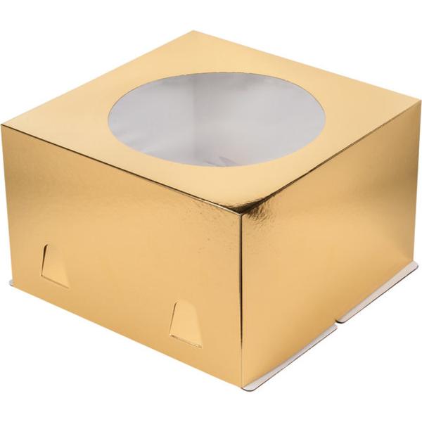 Коробка для торта картонная с окном, 300*300*190 см, золотая