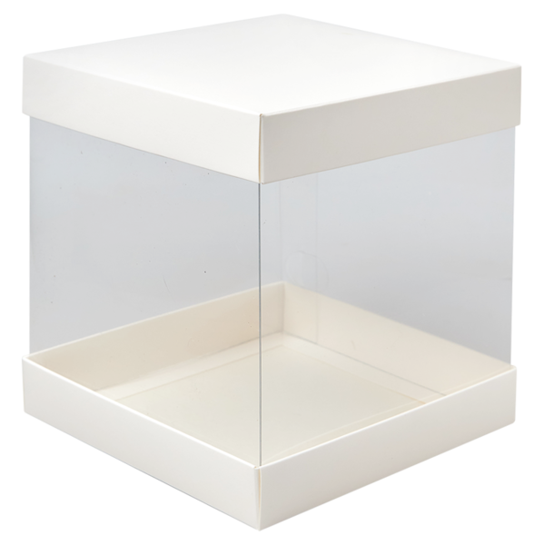 Коробка для торта прозрачная 160x160x180мм, дно и крышка белые