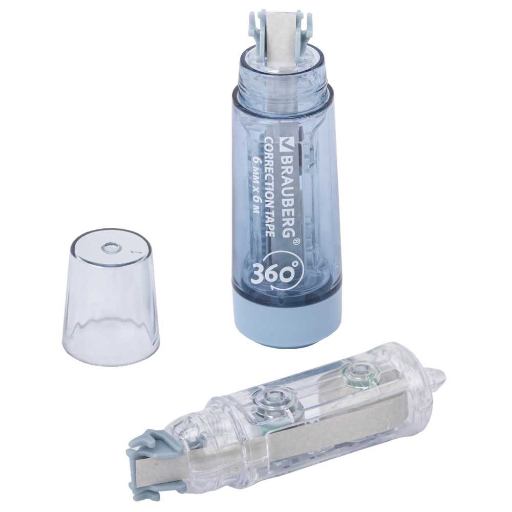 Корректирующая лента BRAUBERG 360°, 6 мм х 6 м + сменный картридж, корпус синий, блистер, 272661