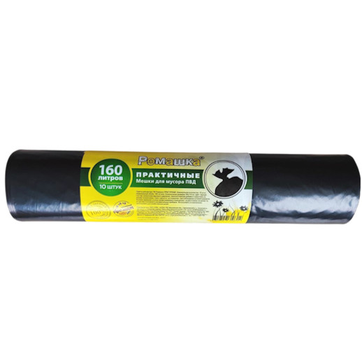Мешки (пакеты) для мусора РОМАШКА 160 литров 90*110см., рулон 10шт, Практичные Черные Z-сложения, ПВД, 39мкм