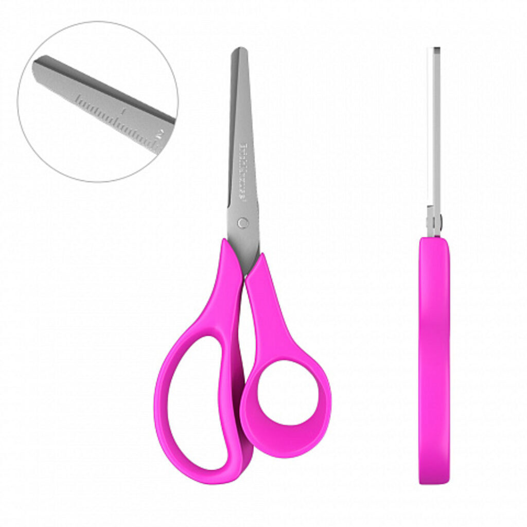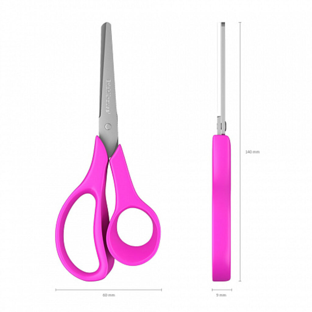 Ножницы с лезвиями из высококачественной нержавеющей стали с безопасными закругленными концами лезвий и линейкой, обеспечивающей точность резки. Не ржавеют. Ручки эргономичной формы из ударопрочного пластика. Модель предусмотрена для левшей.