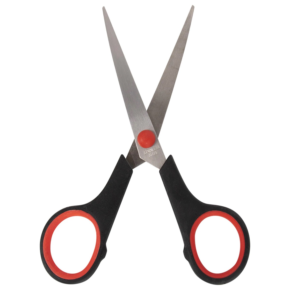 Варианты доставки товара Ножницы STAFF EVERYDAY, 150 мм, бюджет, резиновые вставки, черно-красные, ПВХ чехол г. Выборг: