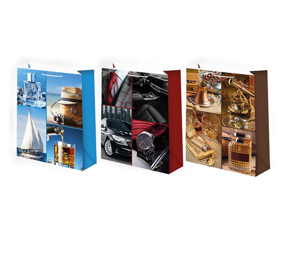 Пакет подарочный бумажный 33*45*10 см, Мужской микс