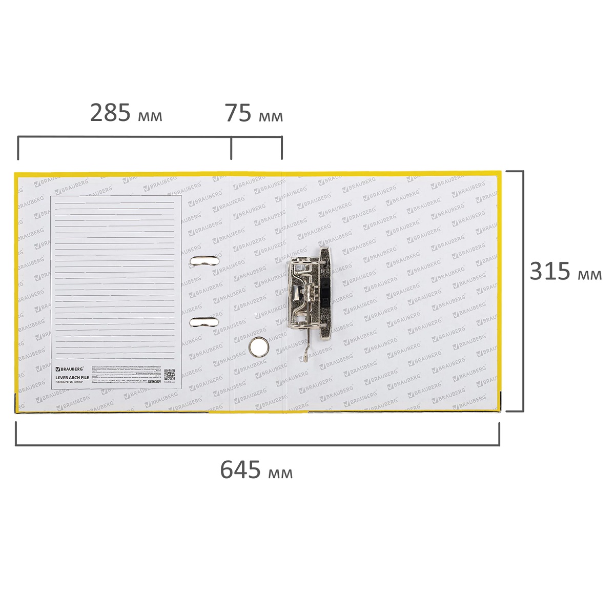 Папка-регистратор, покрытие пластик, 75 мм, ПРОЧНАЯ, с уголком, BRAUBERG, желтая