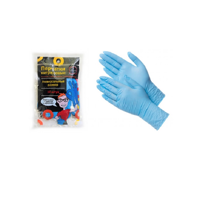 Перчатки Нитриловые, универсальный размер, голубые, 10 шт. в уп., КонтинентПак