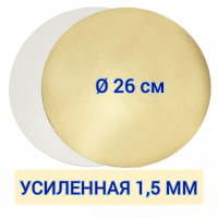 Подложка для торта круглая золото/жемчуг 22 см, усиленная 1,5 мм