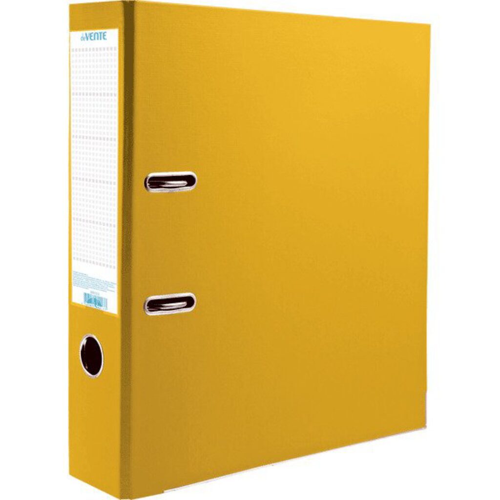 Папка с арочным механизмом "deVENTE" A4 75 мм PVC двусторонний разобранная, металлическая окантовка, запечатка форзаца, наварной карман с этикеткой, желтая