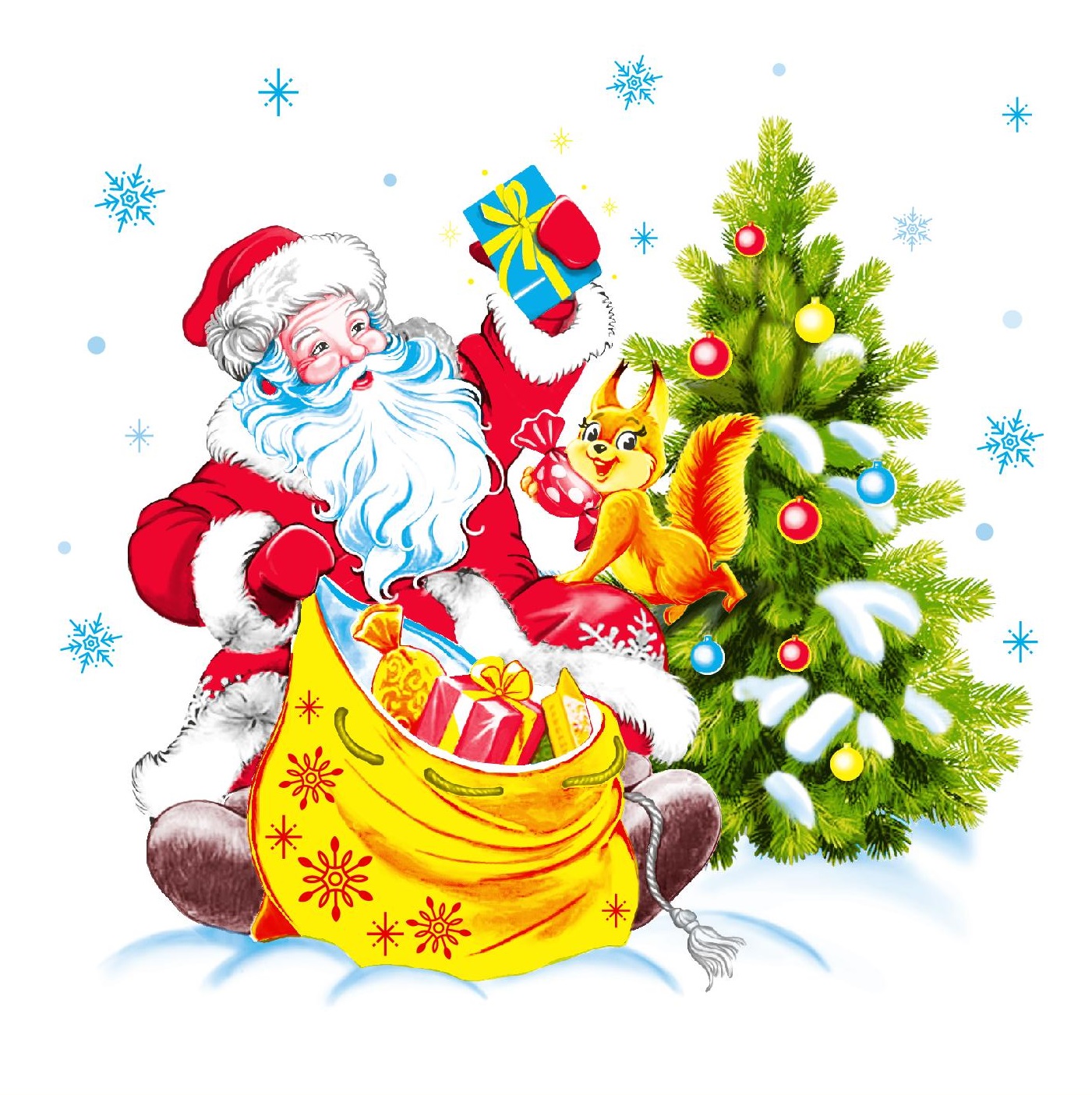 Салфетки бумажные новогодние 24*24см, однослойные, Дед Мороз 50 шт.
