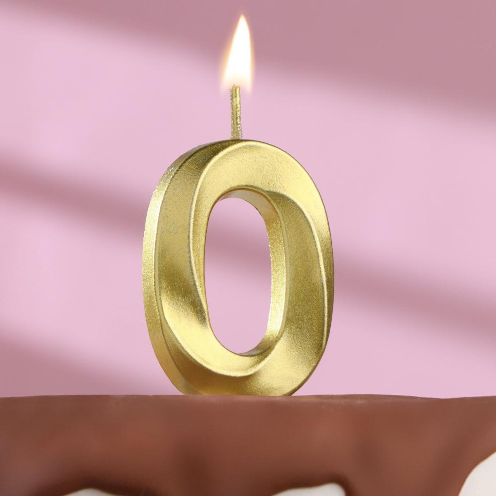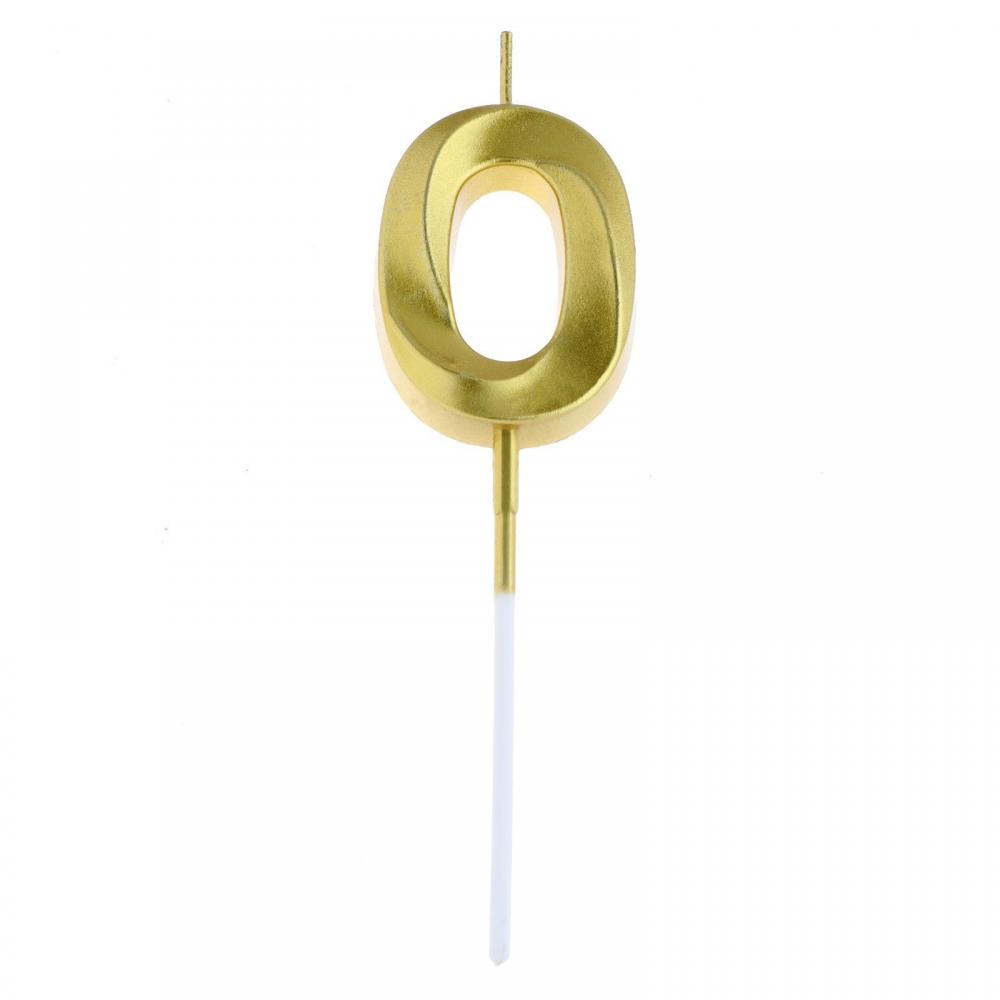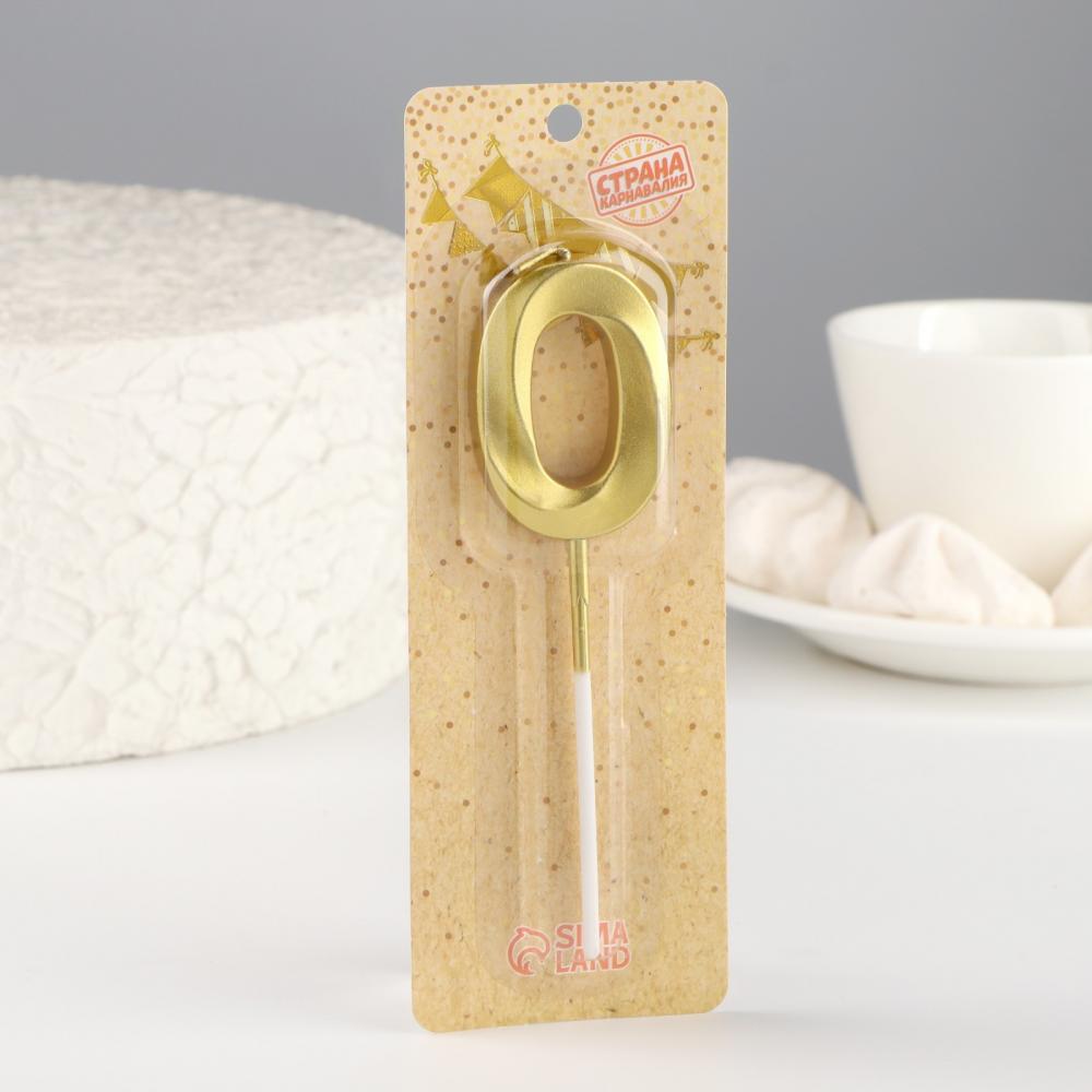 Свеча цифра для торта 0, на шпажке Грань золотая, 5 см