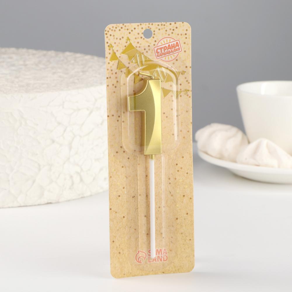 Свеча цифра для торта 1, на шпажке Грань золотая, 5 см