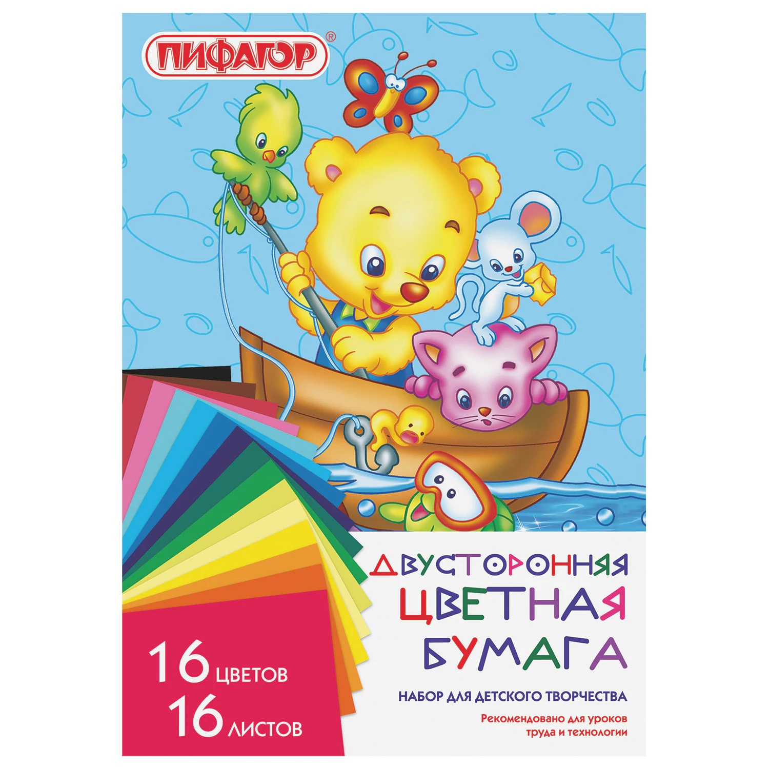 Варианты доставки товара Цветная бумага А4 2-сторонняя газетная, 16 листов, 16 цветов, на скобе, ПИФАГОР, 200х280 мм, Рыбалка г. Выборг: